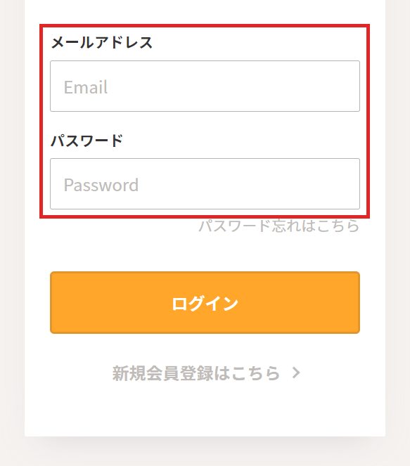会員登録時に登録いただいた「メールアドレス」と、登録完了メールに記載されております「パスワード」をご利用ください。